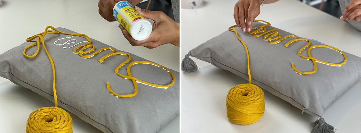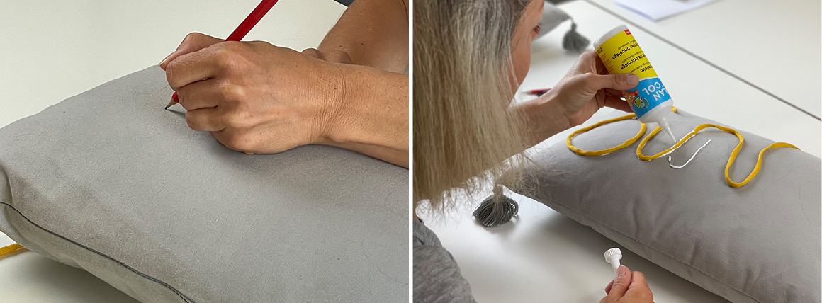 1. Draw the desired lettering on the cushion with the pencil.