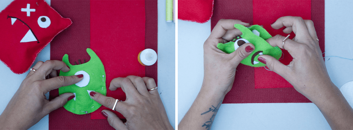 4. Näht zum Schluss die andere Hälfte zusammen und fertig ist euer gruseliges Monster.